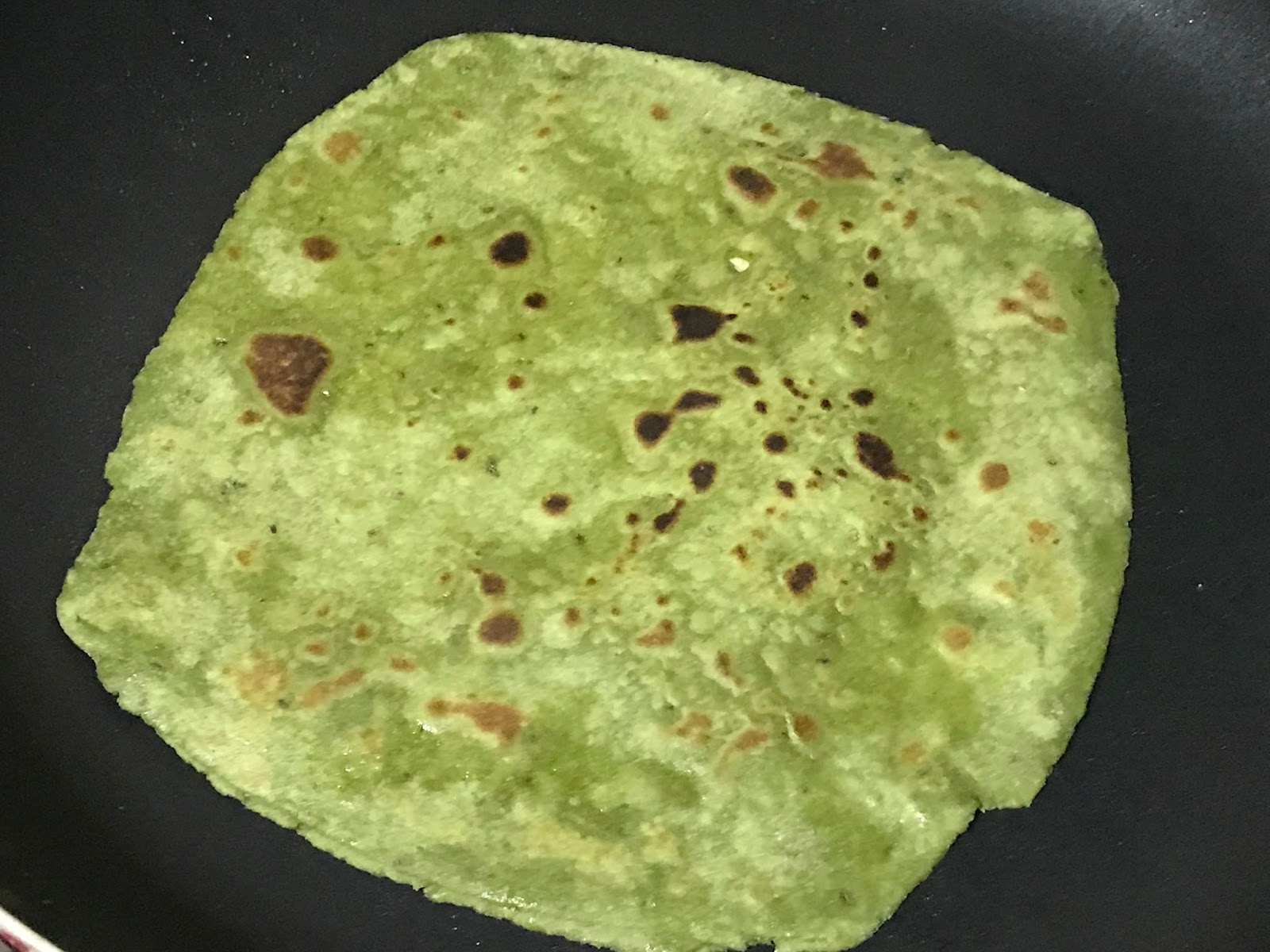 4. Now add spinach puree and the filtered water from step 2 and make a smooth dough.